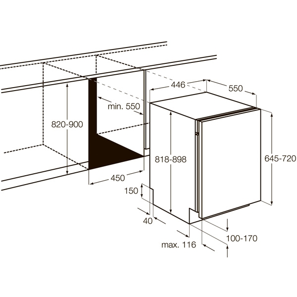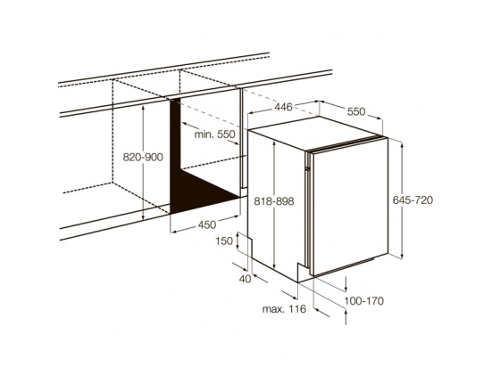 Особенности рабочей камеры - внутренняя поверхность из нерж. стали, регулируемая по высоте корзина для посуды