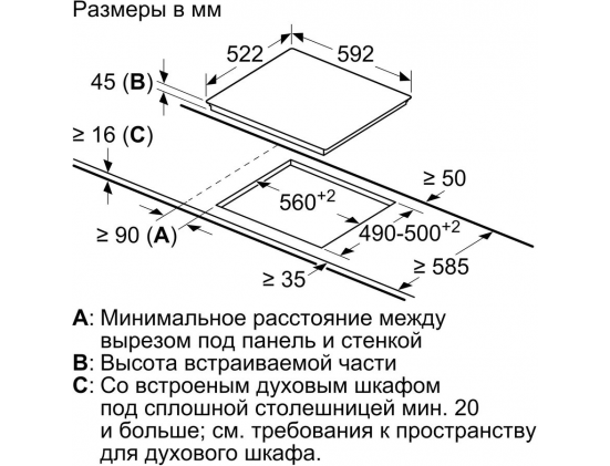 Размеры для встраивания (ШхГ) - 56 x 49 см