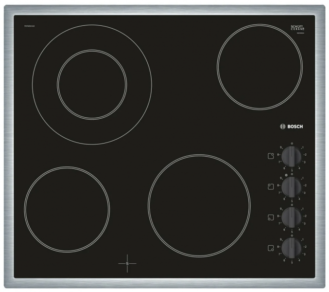 Размеры конфорок - две конфорки диаметром 14,5 см, конфорка диаметром 18 см, конфорка диаметром 12 см, с зоной расширения диаметром 21 см