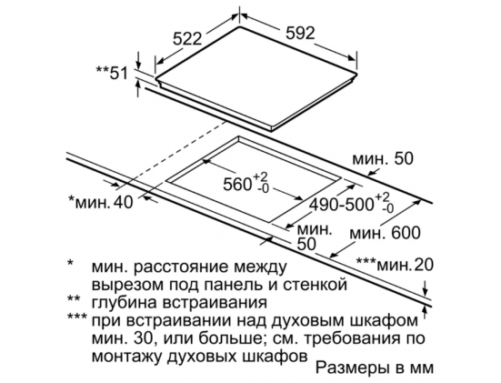 Размеры для встраивания (ШхГ) - 56 x 49 см