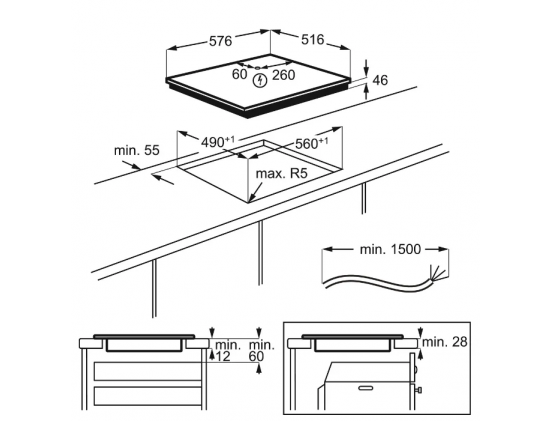 Размеры для встраивания (ШхГ) - 56 x 49 см