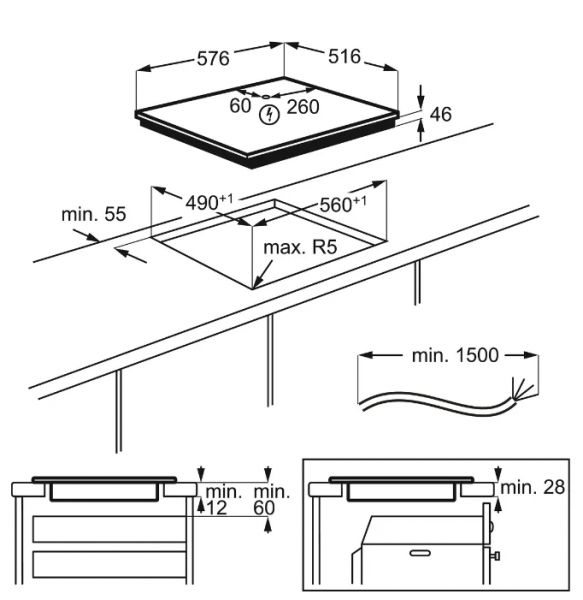 Размеры для встраивания (ШхГ) - 56 x 49 см