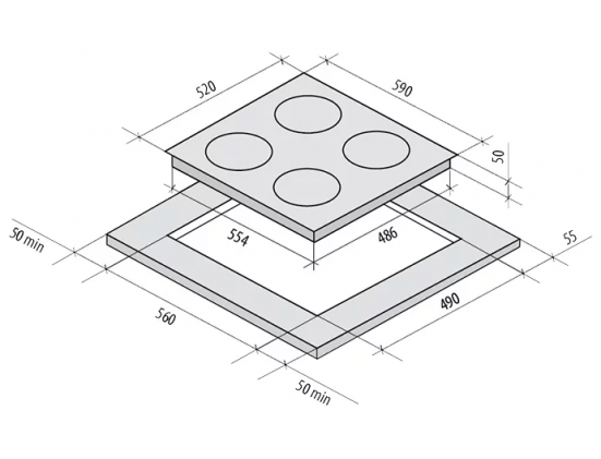 Размеры для встраивания (ШхГ) - 56 x 49 см