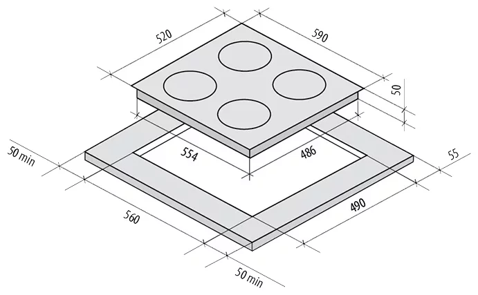 Размеры для встраивания (ШхГ) - 56 x 49 см