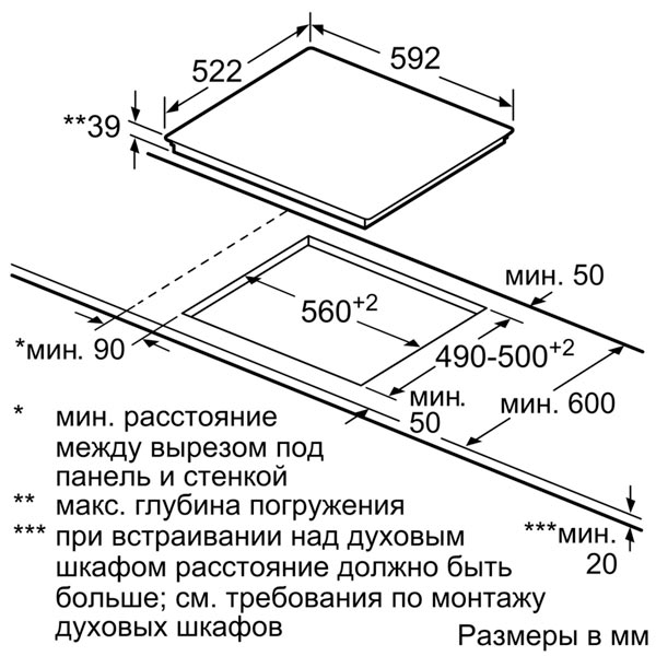 Размеры для встраивания (ШхГ) - 56 x 49 см