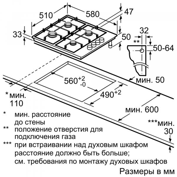 Тип панели - газовая варочная поверхность