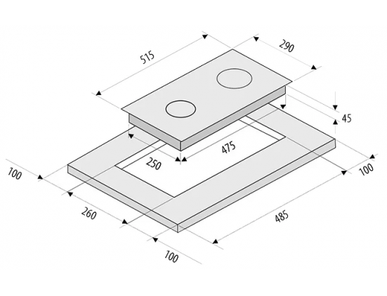 Размеры для встраивания (ШхГ) - 26 x 48.5 см