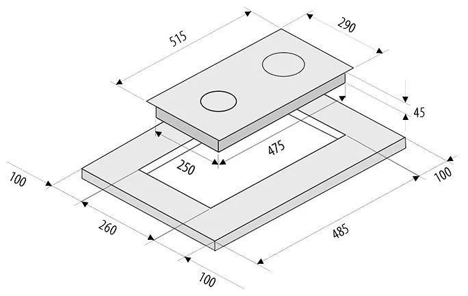Размеры для встраивания (ШхГ) - 26 x 48.5 см