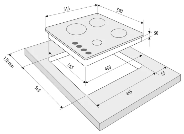 Размеры для встраивания (ШхГ) - 55.5 x 48 см