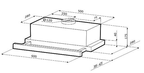 Диаметр патрубка воздуховода - 120 мм