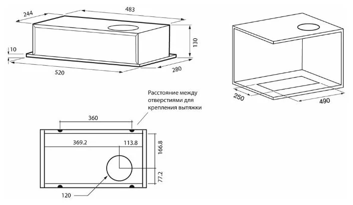 Диаметр патрубка воздуховода - 120 мм